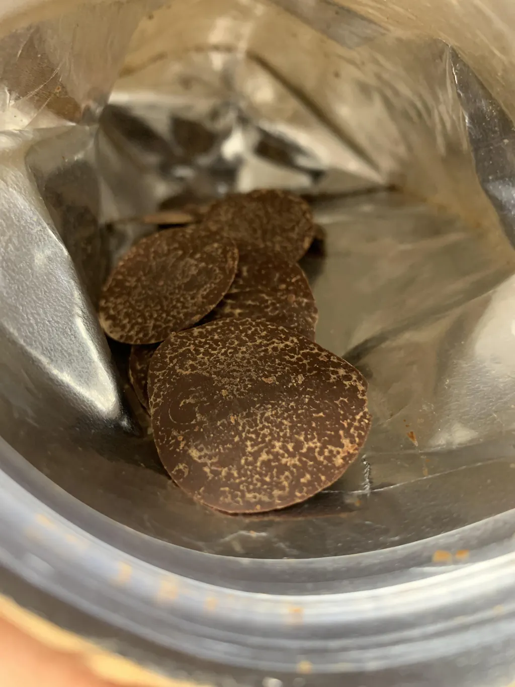 いつも美味しくいただいてます。自宅で溶かしたらファットブルーム現象が起きて失敗しました。体に足りていないのか、食べるときにはたくさん食べてしまうので、もっと量がたくさんあるといいなあ。と思いますが冷蔵庫に入れるのでこれくらいがちょうどいいかもしれません。