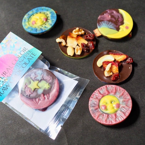 ローチョコレートはお野菜・果物・スパイスで色付けた、ナッツやドライフルーツを散らしたザクザク食感が楽しいマンディアンローチョコレート。
