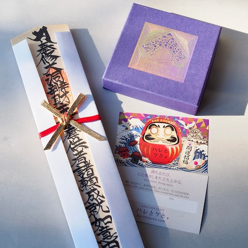 七転び八起きの精神を表す縁起物である達磨をモチーフに、開運招福・商売繁盛・必勝祈願を願って一点一点手作業で作り上げております。
